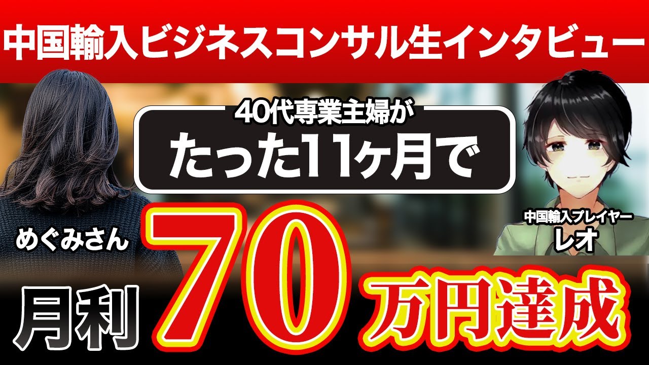 YouTubeで詳細を確認=>【実績者対談】パート月収8.2万円→中国輸入で月商350万円!才能ゼロ主婦が成功した本当の理由【レオ×めぐみさん】