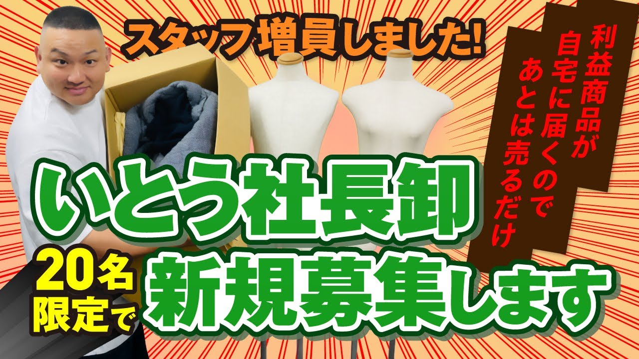 YouTubeで詳細を確認=>【20名だけ募集します】利益商品が自宅に届くのであとは売るだけ!いとう社長卸新規会員を20名限定で募集します